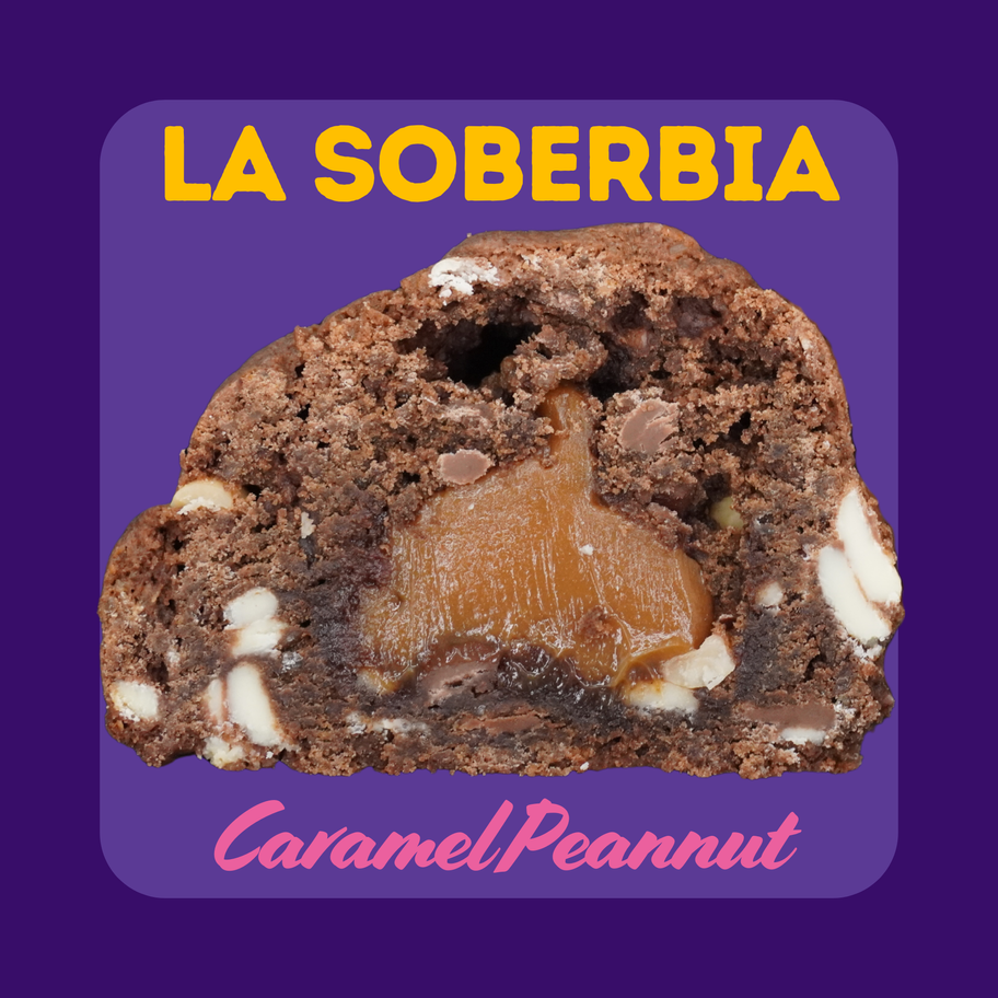 Galleta de masa de chocolate, rellena de dulce de leche y maní.